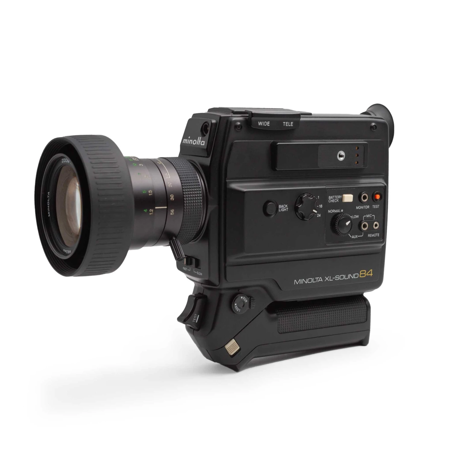 The Minolta XL-Sound series are straightforward but powerful motion picture cameras that shoot Super 8mm film. Our cameras have been restored by Portland, OR-based filmmaker Miles Sprietsma, and can automatically meter for ASA 50-200. Boasting a much wider zoom range than the 42 or 64 models, the XL-Sound 84 is also the only model to natively shoot at 24fps, making it a seriously formidable motion picture machine.
