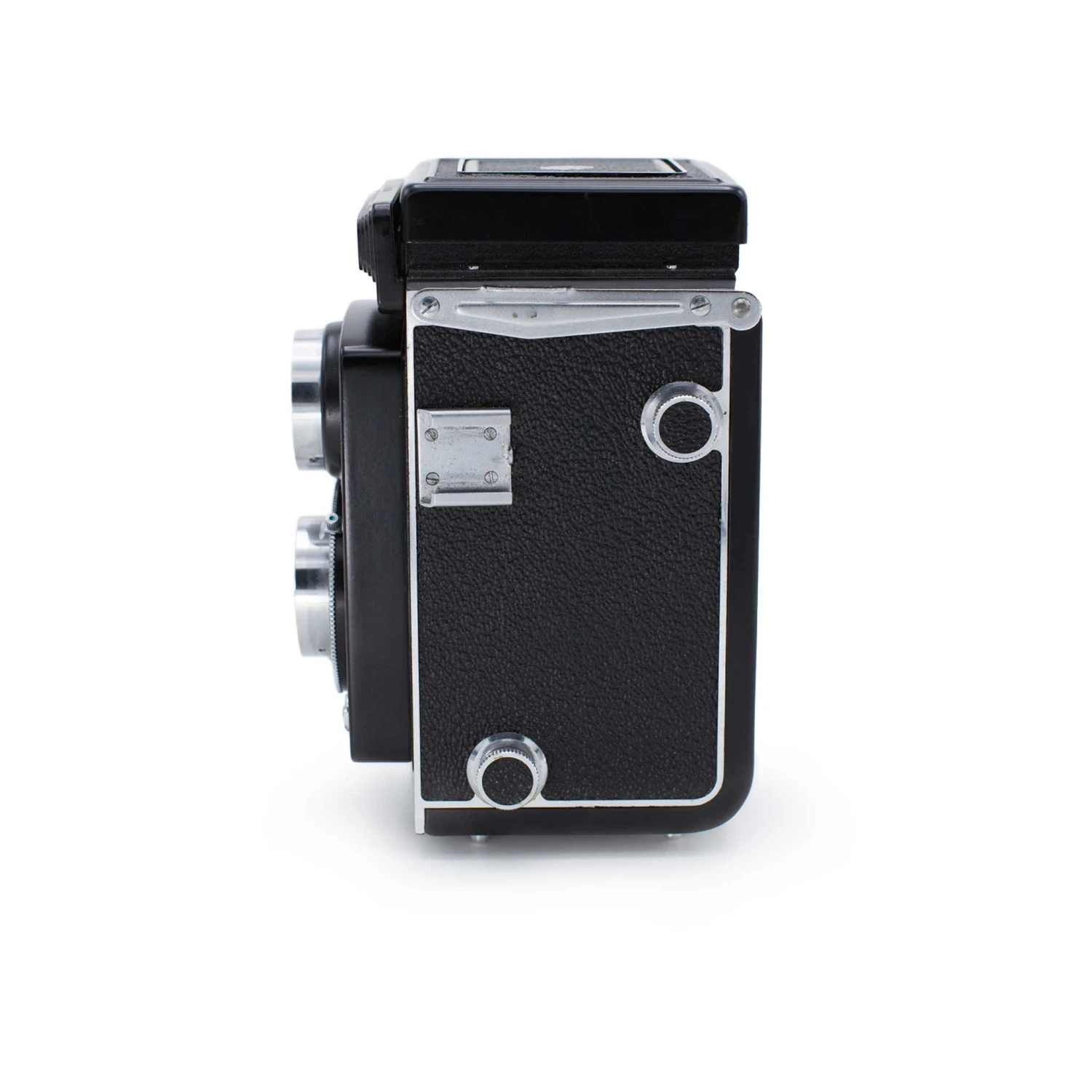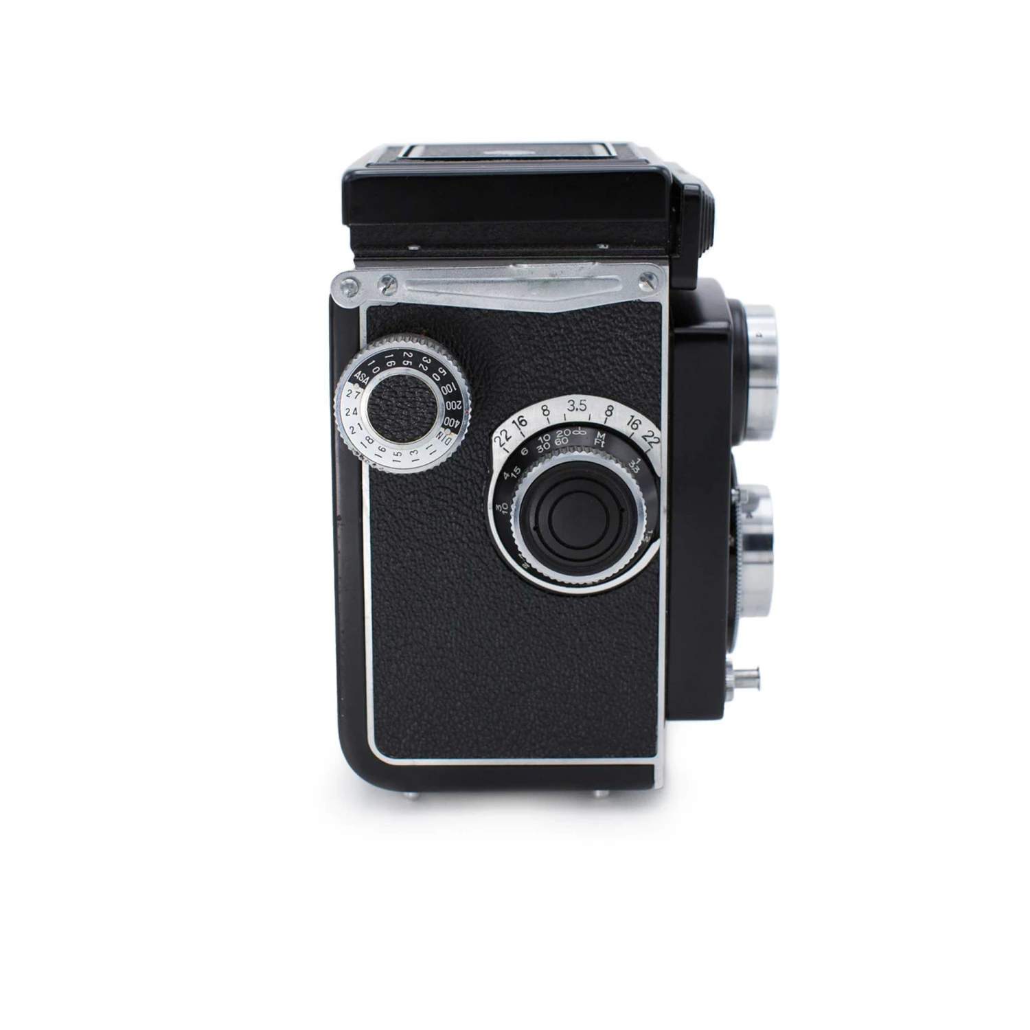 The Yashica A was the first medium format twin-lens reflex (TLR) camera released by Yashica. It features shutter speeds from 1/25th of a second to 1/300th of a second, an aperture range of f/3.5 – f/22, and a ground-glass viewfinder with a focus magnifier.